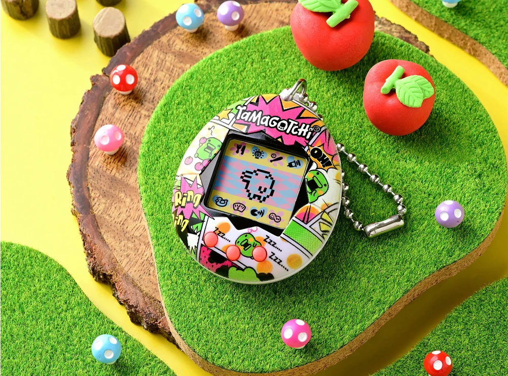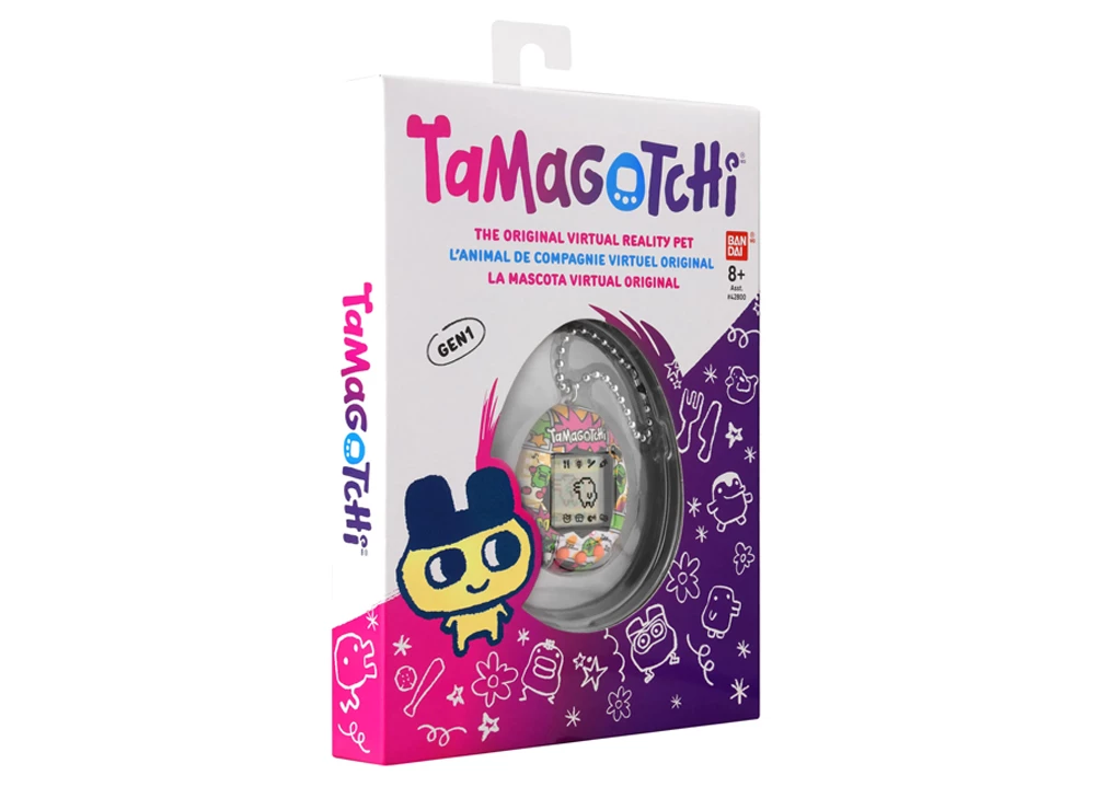 Το αυθεντικό ψηφιακό κατοικίδιο που αγαπήσατε το 1997 επιστρέφει! Το ταΐζετε, το καθαρίζετε, το φροντίζετε και το πειθαρχείτε! Το πώς φροντίζετε τα Tamagotchi σας και πώς τα πάτε στο παιχνίδι, καθορίζει ποιο ενηλίκο Tamagotchi θα πάρετε! Μπρελόκ διαστάσεων 3,5 x 4 εκ., κατασκευασμένο από την Bandai. Οι μπαταρίες (LR44) συμπεριλαμβάνονται. Οδηγίες χρήσης στα αγγλικά: (Σελίδα 1, ), Σελίδα 2)
