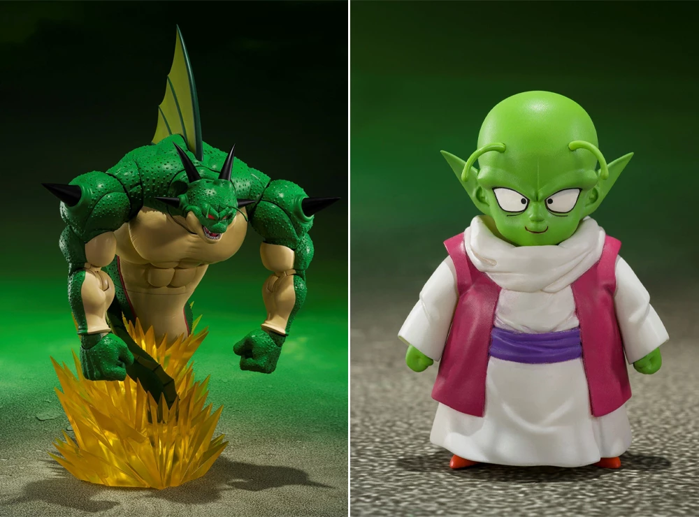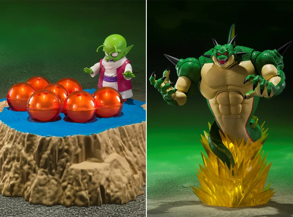 Action figures των Porunga και Dende (S.H. Figuarts Set) από την anime σειρά Dragon Ball Z. Φιγούρες δράσης με αρθρώσεις για δυναμικές πόζες και επιπλέον αξεσουάρ (πρόσωπα, χέρια, εφέ), από υλικό PVC, ύψους 28 εκ., από την Bandai.