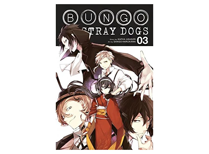 Ο τρίτος manga τόμος (Volume 3) από το Bungo Stray Dogs. Σενάριο Kafka Asagiri και σχέδιο από Sango Harukawa. Αγγλική έκδοση από την Yen Press.