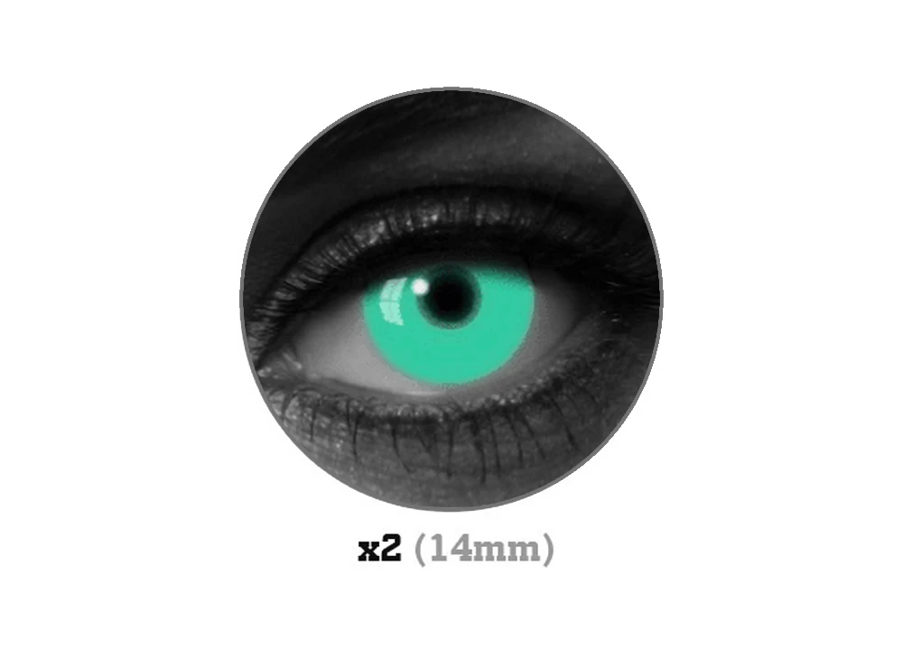 Ζευγάρι φακών επαφής “UV Glow Green” (φωσφορίζουν στο σκοτάδι) διάρκειας 12 μηνών, διαμέτρου 14 χλστ, ιδανικοί για cosplay και όχι μόνο, από την Crazy Lens. Ενδέχεται να υπάρχει μείωση του οπτικού πεδίου. Προσοχή, απαραίτητη η συμβουλή οπτικου πριν την εφαρμογή τους.