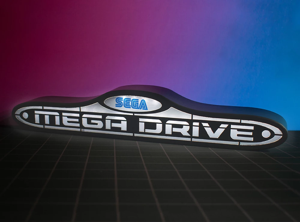 Φωτιστικό με το λογότυπο της video game κονσόλας Sega Mega Drive. Διακοσμητικό φωτιστικό από υλικό PVC, διαστάσεων 42,5 x 8 εκ. που λειτουργεί με USB ή μπαταρίες (3 x AA, δεν συμπεριλαμβάνονται) από την Fizz Creations.