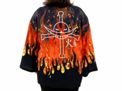 Haori με σχέδιο τα τατουάζ του Portgas D. Ace από την anime σειρά One Piece. Haori από πολυεστέρα, μεσαίου μεγέθους κατάλληλο για άτομα μέχρι και ύψος 170 εκ. (Το μοντέλο της φωτογραφίας έχει ύψος 154 εκ.)