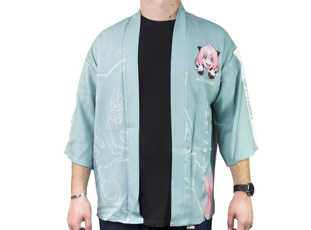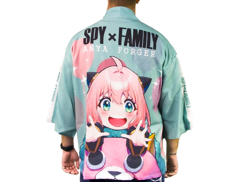 Haori με σχέδιο την Anya Forger από την anime σειρά Spy x Family. Haori από πολυεστέρα, μεγάλου μεγέθους κατάλληλο για άτομα ύψους 170 εκ. και άνω. (Το μοντέλο της φωτογραφίας έχει ύψος 190 εκ.)