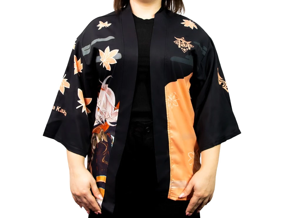 Haori με σχέδιο τον Kaedahara Kazuha από τo video game Genshin Impact. Haori από πολυεστέρα, μεσαίου μεγέθους κατάλληλο για άτομα μέχρι και ύψος 170 εκ. (Το μοντέλο της φωτογραφίας έχει ύψος 154 εκ.)