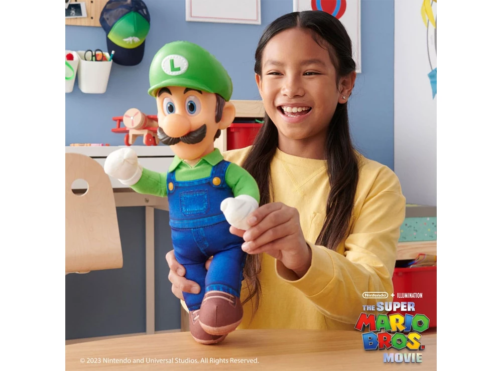 Λούτρινη φιγούρα του Luigi από την ταινία The Super Mario Bros. Λούτρινη φιγούρα ύψους 30 εκ., από την Jakks Pacific.