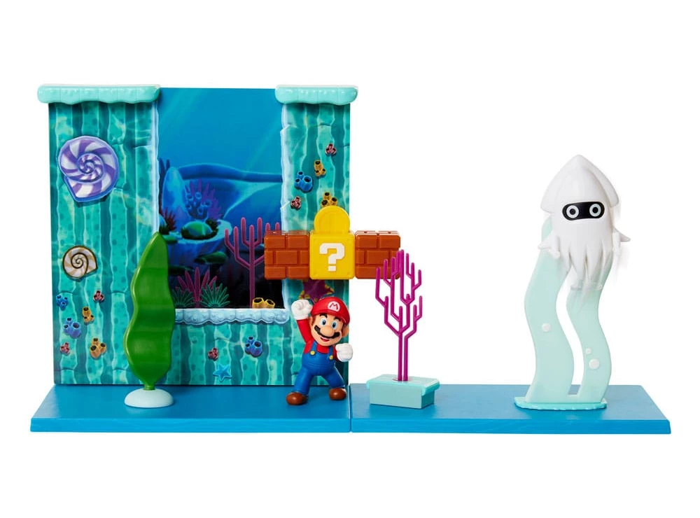 Σετ παιχνιδιού με μια υποβρύχια πίστα από την video game σειρά Super Mario. Σετ παιχνιδιού που περιλαμβάνει διάφορες φιγούρες και αξεσουάρ, διαστάσεων 35 x 20 εκ., από την Jakks Pacific.