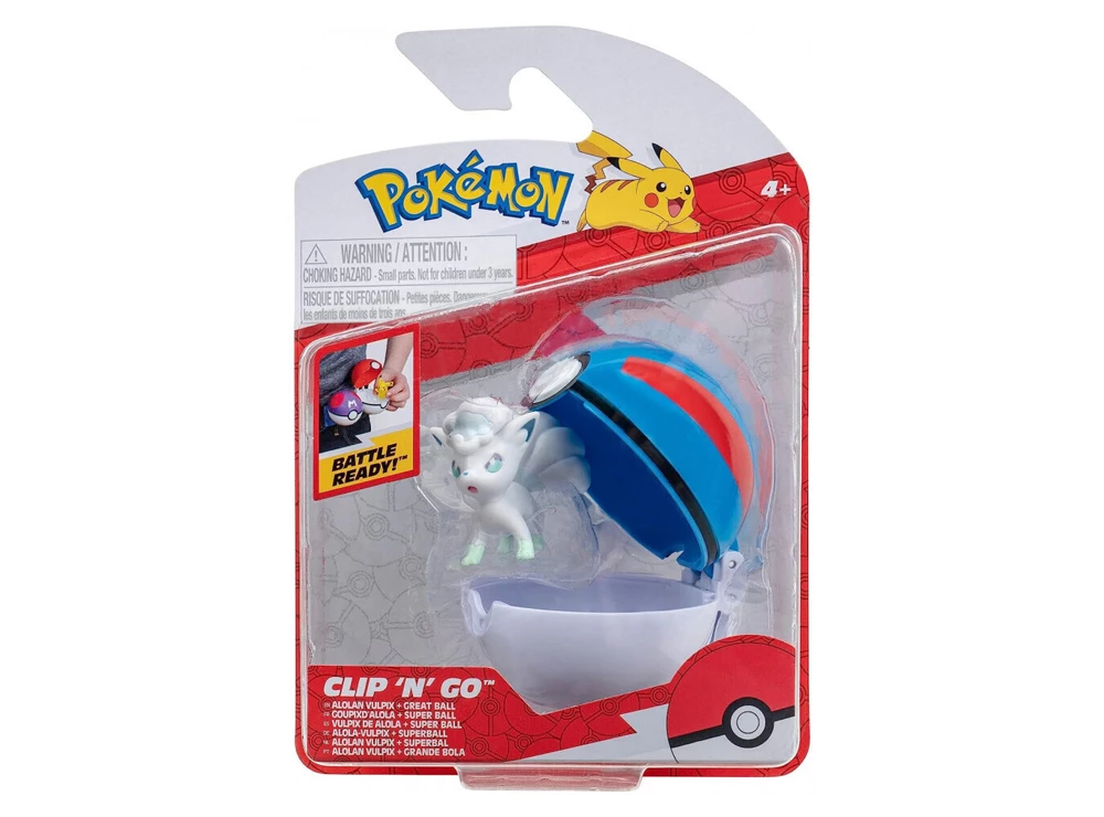 Φιγούρα του Alolan Vulpix (Clip n Go) και μιας Great Ball από την anime και video game σειρά Pokemon. Μικρή φιγούρα από υλικό PVC, ύψους 5 εκ., από την Jazwares.