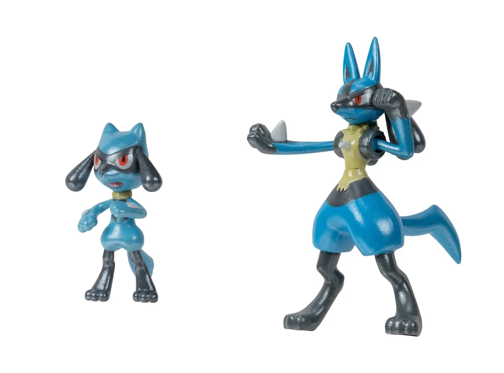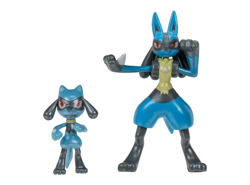 Σετ με φιγούρες των Riolu και Lucario (Select Evolution Multi-Pack) από την anime και video game σειρά Pokemon. Σετ με δυο μικρές φιγούρες από υλικό PVC, ύψους 5 εκ. με 7 εκ., από την Jazwares.