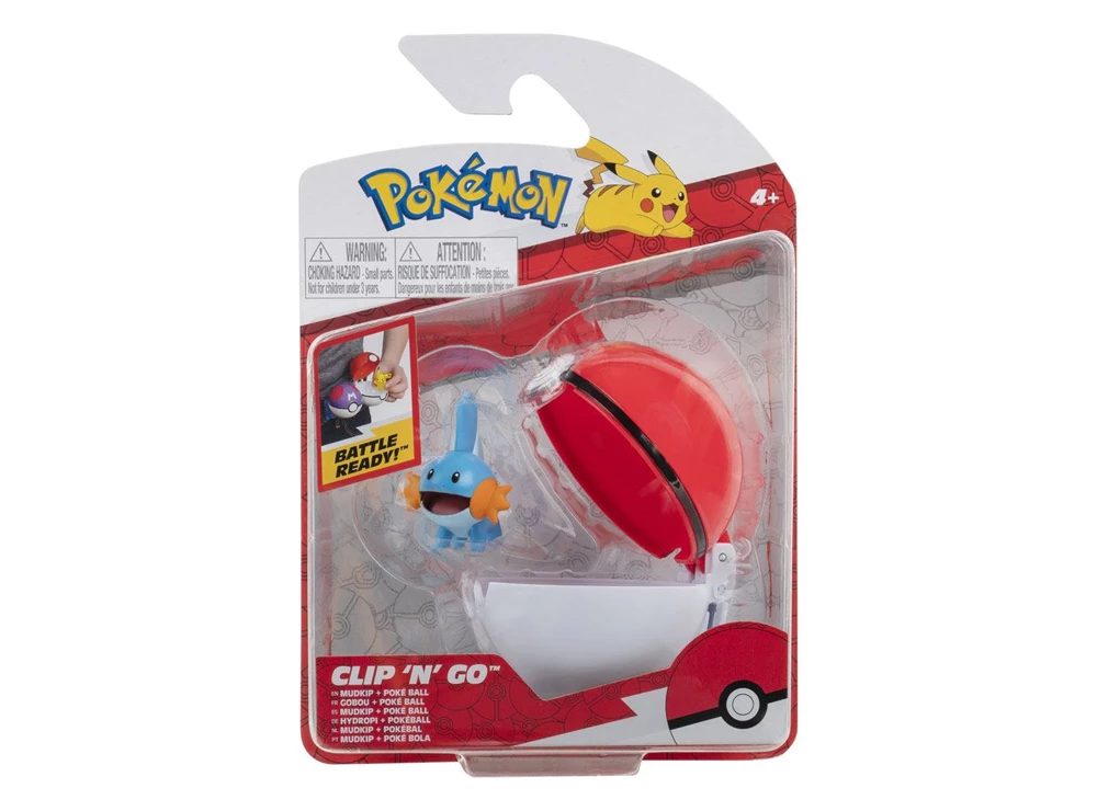 Φιγούρα του Mudkip (Clip n Go) και μια Poke Ball από την anime και video game σειρά Pokemon. Μικρή φιγούρα από υλικό PVC, ύψους 5 εκ., από την Jazwares.