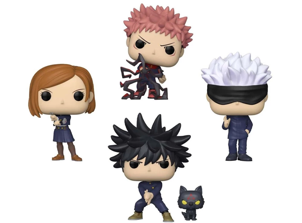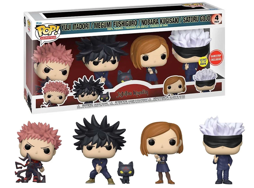 Σετ φιγούρων με τον Yuji Itadori, τον Megumi Fushiguro, την Nobara Kugisaki και τον Satoru Gojo (Special Glows in the Dark 4-Pack Funko POP!) από την anime σειρά Jujutsu Kaisen. Μικρές φιγούρες από υλικό vinyl, ύψους 9 εκ., από την Funko.