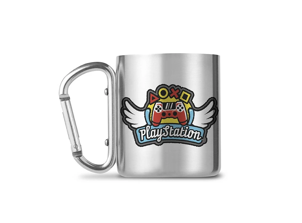 Μεταλλική κούπα με σχέδια από την κονσόλα PlayStation της Sony. Κούπα από ανοξείδωτο ατσάλι με σχέδιο και γάντζο, χωρητικότητας 235 ml.