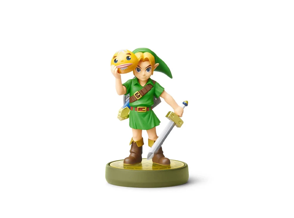 Collectible Amiibo figure of Link from the video game The Legend of Zelda: Majora’s Mask. This figure is 7 cm tall and contains in its stand a chip with NFC technology which allows communication with games on the Nintendo Switch, Nintendo Wii U and New Nintendo 3DS console systems (ex. Super Smash Bros).