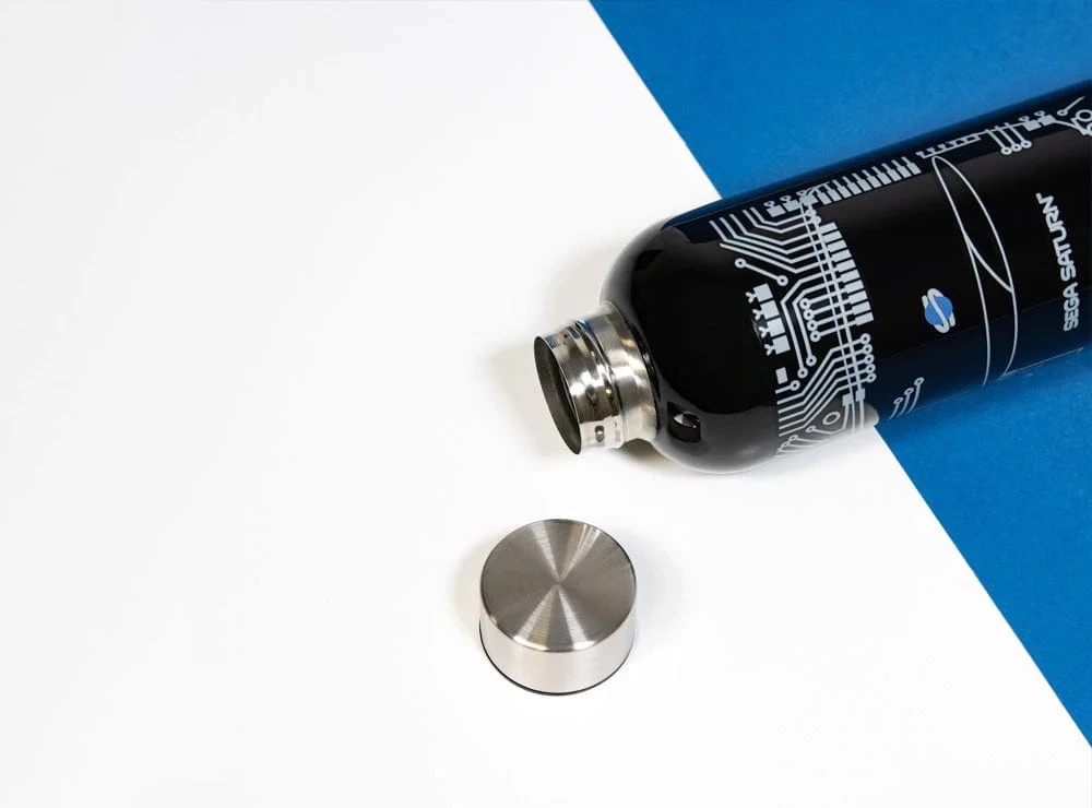 Παγούρι με σχέδια από την κονσόλα Sega Saturn. Παγούρι από ανοξείδωτο ατσάλι, χωρητικότητας 500 ml, κατάλληλο για ζεστά και κρύα ροφήματα, από την Numskull.