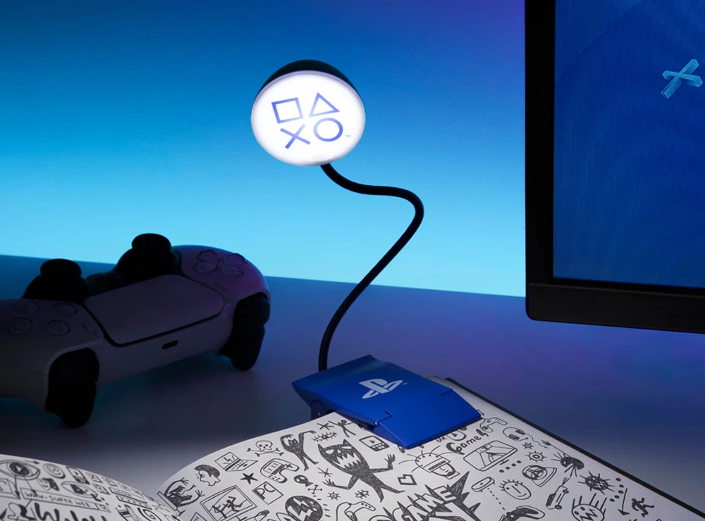 Φακός – φωτάκι διαβάσματος με θέμα την video game κονσόλα Sony Playstation. Φακός από υλικό PVC, που λειτουργεί με 3xAAA μπαταρίες (Δεν συμπεριλαμβάνονται). Από την Paladone.