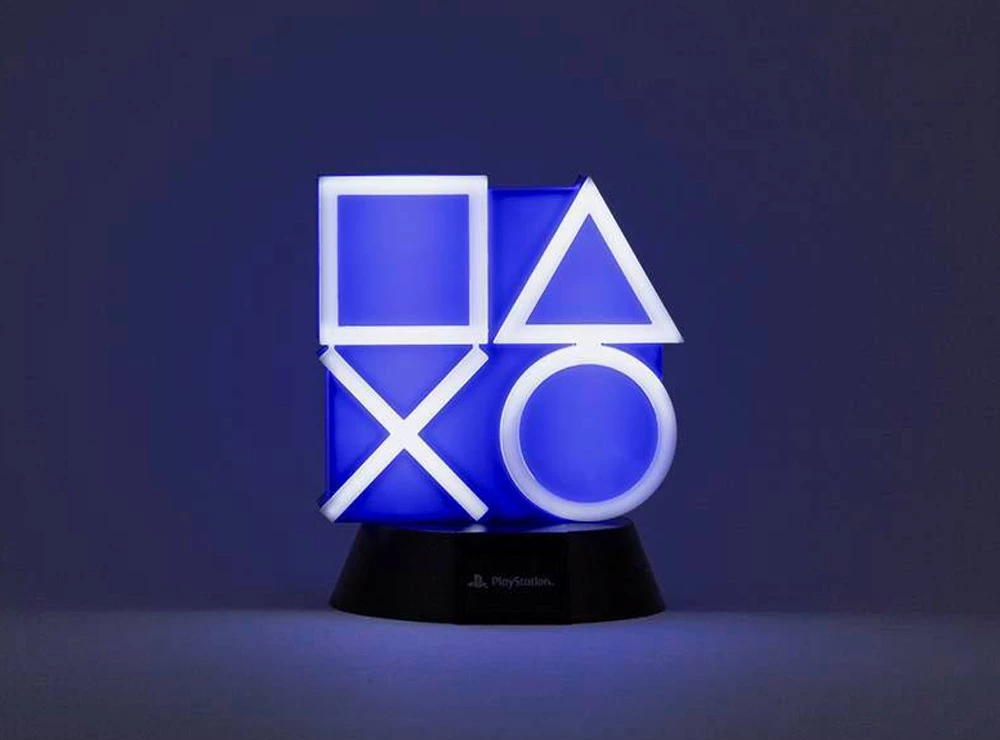Φωτιστικό με τα κουμπιά της κονσόλας Sony Playstation. Διακοσμητικό φωτιστικό από υλικό PVC, ύψους 10 εκ. που λειτουργεί με 2x μπαταρίες AAA, δεν περιλαμβάνονται), από την Paladone.
