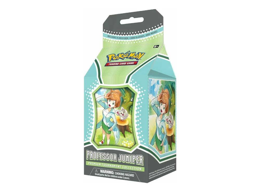 Σετ Professor Juniper Premium Tournament Collection από το Pokémon Trading Card Game. Περιλαμβάνει 1 full art foil κάρτα, 3 foil κάρτες, 65 sleeves, 1 deck box, 1 κέρμα, 2 coin condition markers, 6 ζάρια, 7 booster packs και κωδικoύς για το Pokémon TCG Live. Από την Pokémon Company.