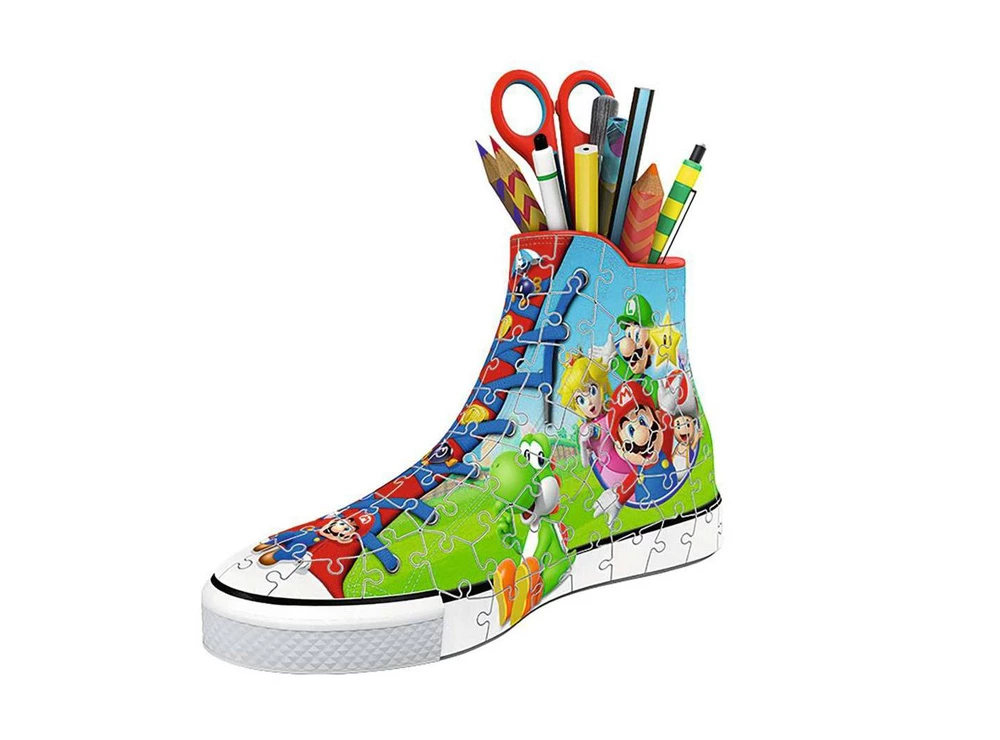 3D παζλ μολυβοθήκη sneaker με χαρακτήρες από την video game σειρά Super Mario. Παζλ 108 κομματιών, ύψους 13,5 εκ., από την Ravensburger.