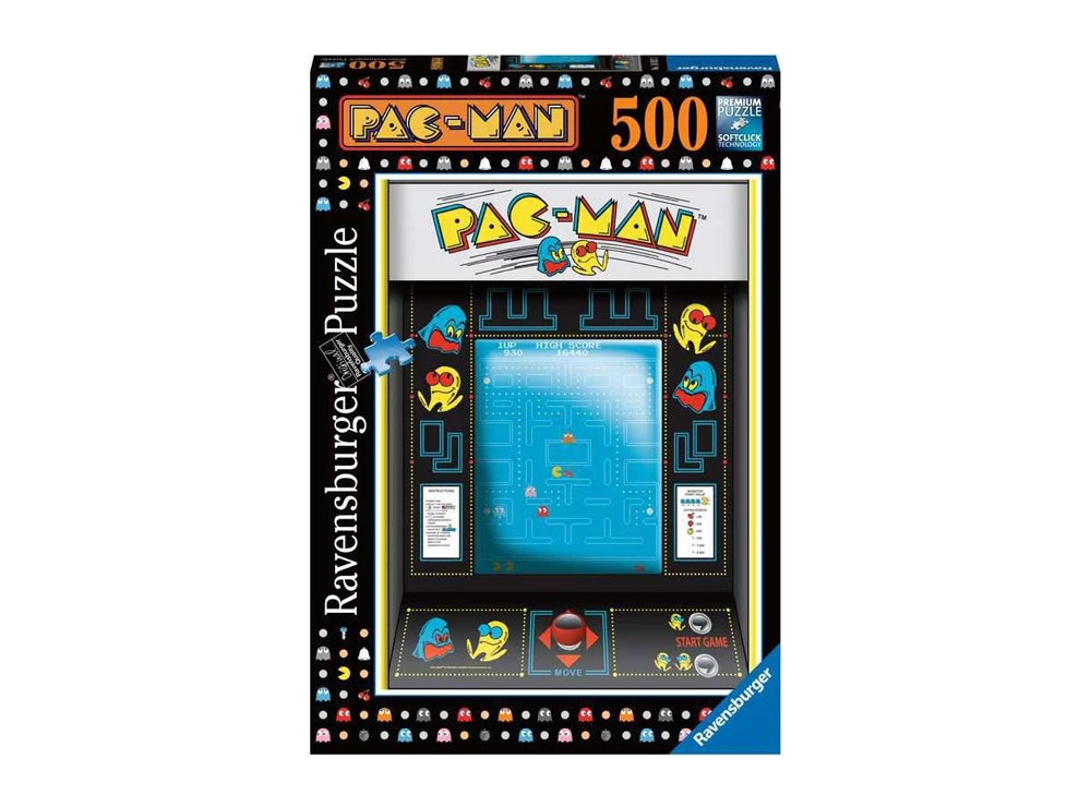 Παζλ με θέμα το retro video game Pac-Man!. Παζλ 500 κομματιών, διαστάσεων 36 x 49 εκ., από την Ravensburger.