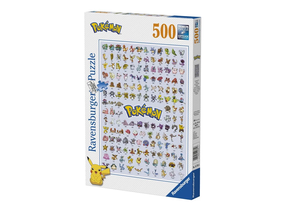 Παζλ με τα Pokemon της πρώτης γενιάς από την anime και video game σειρά Pokemon. Παζλ 500 κομματιών, διαστάσεων 36 x 49 εκ., από την Ravensburger.