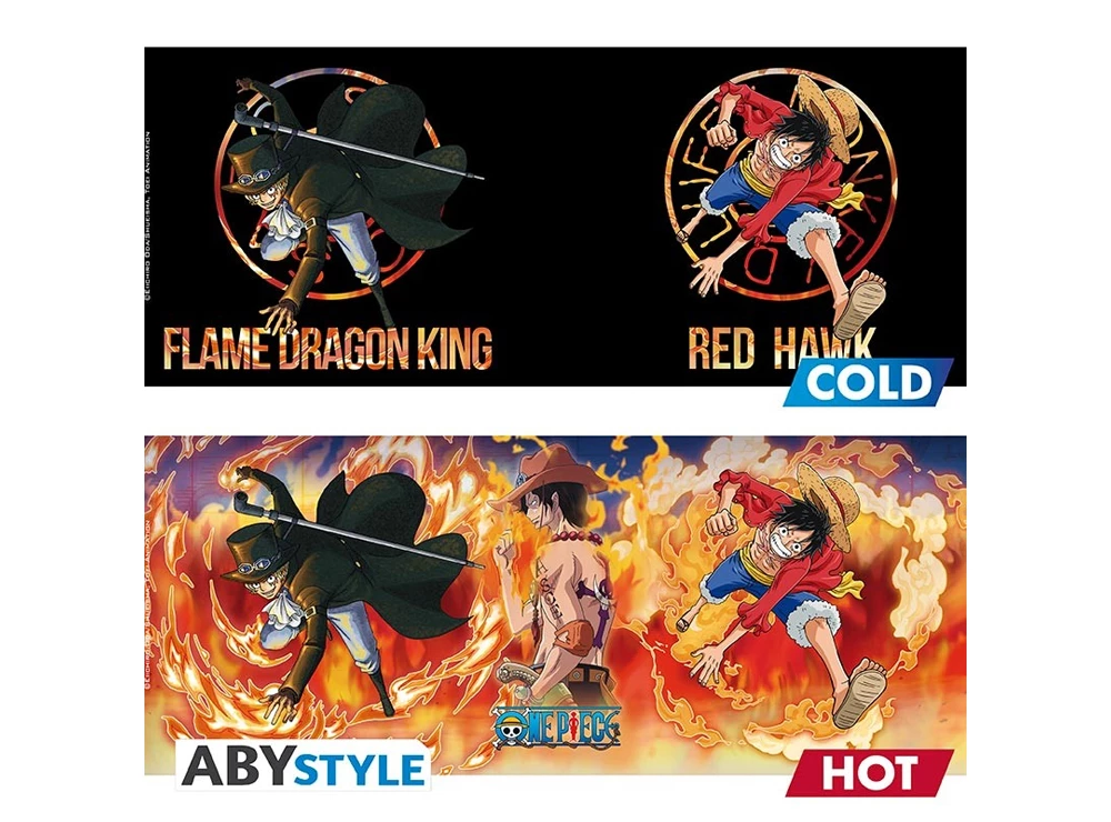 Σετ με μια κούπα με τον Luffy και τον Sabo (Heat-Active) και ένα σουβέρ με το σύμβολο των Straw Hats από την anime σειρά One Piece. Σετ ιδανικό για δώρο με μια κεραμική κούπα χωρητικότητας 460 ml και ένα σουβέρ από φελλό.