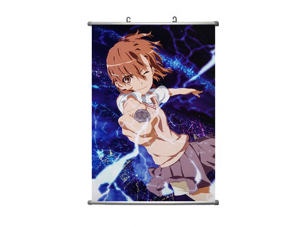 Wall scroll με την Misaka Mikoto από την anime σειρά Τoaru Majutsu no Index. Εκτυπωμένη υφασμάτινη αφίσα διαστάσεων 60 x 90 εκ. που τυλίγεται σε πάπυρο.