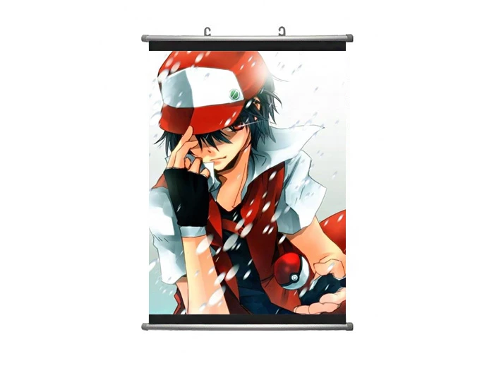 Wall Scroll με τον Red από το παιχνίδι Pokemon (Red, Green, Blue & Yellow). Εκτυπωμένη υφασμάτινη αφίσα διαστάσεων 60 x 90 εκ. που τυλίγεται σε πάπυρο.