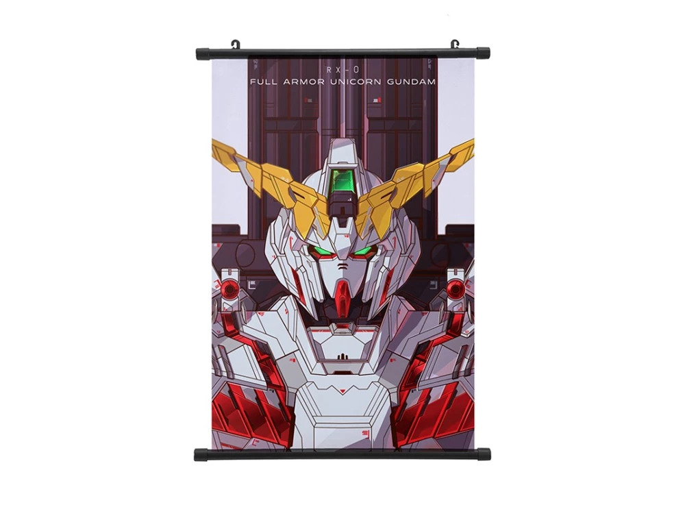 Wall scroll με το RX-0 Unicorn Gundam από την anime σειρά Mobile Suit Gundam Unicorn. Εκτυπωμένη υφασμάτινη αφίσα διαστάσεων 60 x 90 εκ. που τυλίγεται σε πάπυρο.